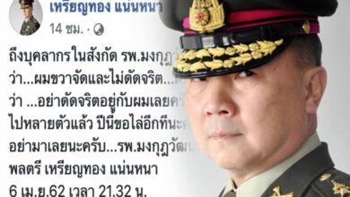 ราชกิจจาฯ ประกาศ พล.ท.สรรเสริญ พ้นตำแหน่งในกองทัพบก เป็นข้าราชการพลเรือน วันที่ 7 เม.ย. ราชกิจจานุเบกษาประกาศสำนักนายกฯ ให้ พล.ท.สรรเสริญ แก้วกำเนิด พ้นจากตำแหน่ง ผู้ทรงคุณวุฒิพิเศษกองทัพบก กระทรวงกลา