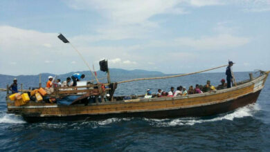 ชาวบ้านเกาะลันตานำข้าวสารอหารแห้งบริจาคให้ชาวโรฮิงญา ที่กำลังเดินทางต่อไปยังประเทศมาเลเซีย