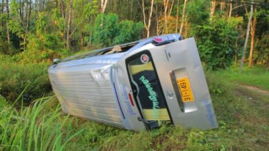 รถรับส่งนทท.เสียหลักพุ่งชนที่ทำการชมรมเรือหางยาวอ่าวปอ นทท.บาดเจ็บเล็กน้อย 10 ราย