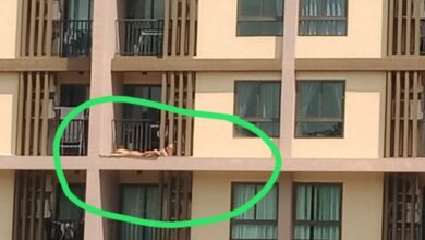 หวาดเสียว! นักท่องเที่ยวเห็นแดดดีสวมชุดบีกินี่ออกมานอนอาบแดดริมระเบียง
