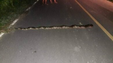 หนุ่มถึงกับผงะ!!!พบงูเหลือมเลื้อยขวางหน้ารถ ลงไปดูถึงที่ถึงกับอุทาน”อันหละม๊ะ ใหญ่หนัด”