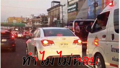 โซเชี่ยลแชร์ว่อน เก๋งตีมึน ไม่หลบรถพยาบาล จนลงไปเคาะกระจกบอก