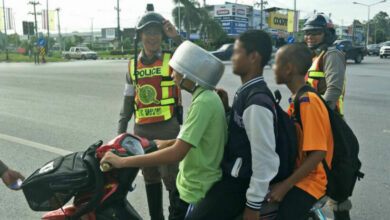 นักเรียนขี่มอเตอร์ไซค์ซ้อน 3 ดูเผิน ๆ นึกว่าหมวกกันน็อก ที่แท้หม้อ ตำรวจยิ้มก๊าก ตักเตือนก่อนปล่อย ใส่หม้อแทนหมวกกันน็อก – เป็นภาพที่โลกโซเชียลเห็นแล้วขำกลิ้ง กับสเตตัสของ ธนิต บุษบงค์ ที่โพสต์ภ