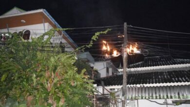 ระทึกกลางดึก …ไฟลุกคาเสา หวั่นลามบ้านโชคดีแจ้งจนท.ดับทัน