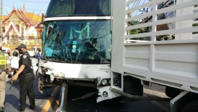 จุดเดิมรอบสอง! บัสเสียหลักขณะลงเขาป่าตอง ชนรถนับสิบคัน บาดเจ็บ 3 คน