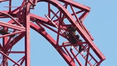 เสียชีวิตแล้ว คนงานขาหักติดบนเครนถล่ม ถ.พระรามที่ 3