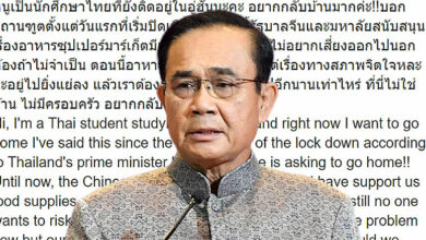 สถานการณ์ไวรัสโคโรน่า นศ.ไทยในอู่ฮั่น โต้นายก แจ้งสถานทูตตั้งแต่เริ่มปิดเมือง หลังพลเอกประยุทธ์บอก อยากกลับบ้านให้แจ้งสถานทูต แต่ยังไม่มีใครมาแจ้ง ไวรัสโคโรน่า – จากกรณีมีนักศึกษาไทยที่เรียนอยู่