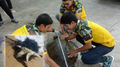 ช่วยชีวิตเต่าหญ้า ติดอวน คลื่นซัดเกยตื้นหน้าหาดพังงา ส่งพักฟื้นศูนย์วิจัย