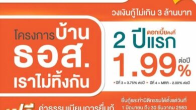 สินเชื่อโครงการบ้าน ธอส. เราไม่ทิ้งกัน ดอกเบี้ย 1.99% ต่อปี คงที่ 2 ปีแรก