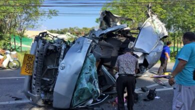 สลด! รถตู้นักท่องเที่ยวจีนจากภูเก็ต พุ่งชนท้ายรถพ่วง 18 ล้อ อย่างจัง เสียชีวิตคาที 2 ราย บาดเจ็บ 7 ราย