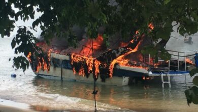 ระทึกเพลิงไฟไหม้เรือสปีดโบ๊ท ขณะจอดรอนักท่องเที่ยวเล่นน้ำ จ.พังงา