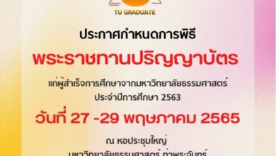 ธรรมศาสตร์ แจ้ง วันรับปริญญา บัณฑิต 62-63 รับตั้งแต่ 27-29 พ.ค.