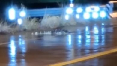 ชาวบ้านผวา เจอจระเข้ 2 เมตร นอนกลางถนน ฝนตกหนักน้ำท่วมระยอง