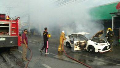 เพลิงไหม้รถยนต์วอด อาม่าและหลานหนีลงจากรถหวุดหวิด