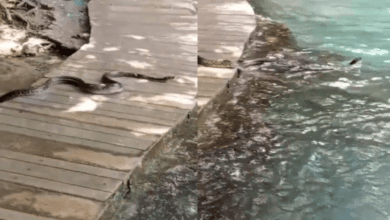 วงแตก งูว่ายลงสระมรกต นักท่องเที่ยวเผ่นกระเจิง (คลิป)